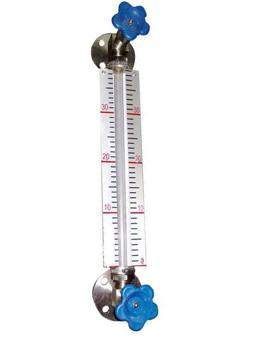 儀表在上下閥上都裝有G3/4"或M27×1.5的螺紋接頭,通過法蘭與容器連接構成連通器,透過玻璃管可直接顯示容器內液位的高度。
